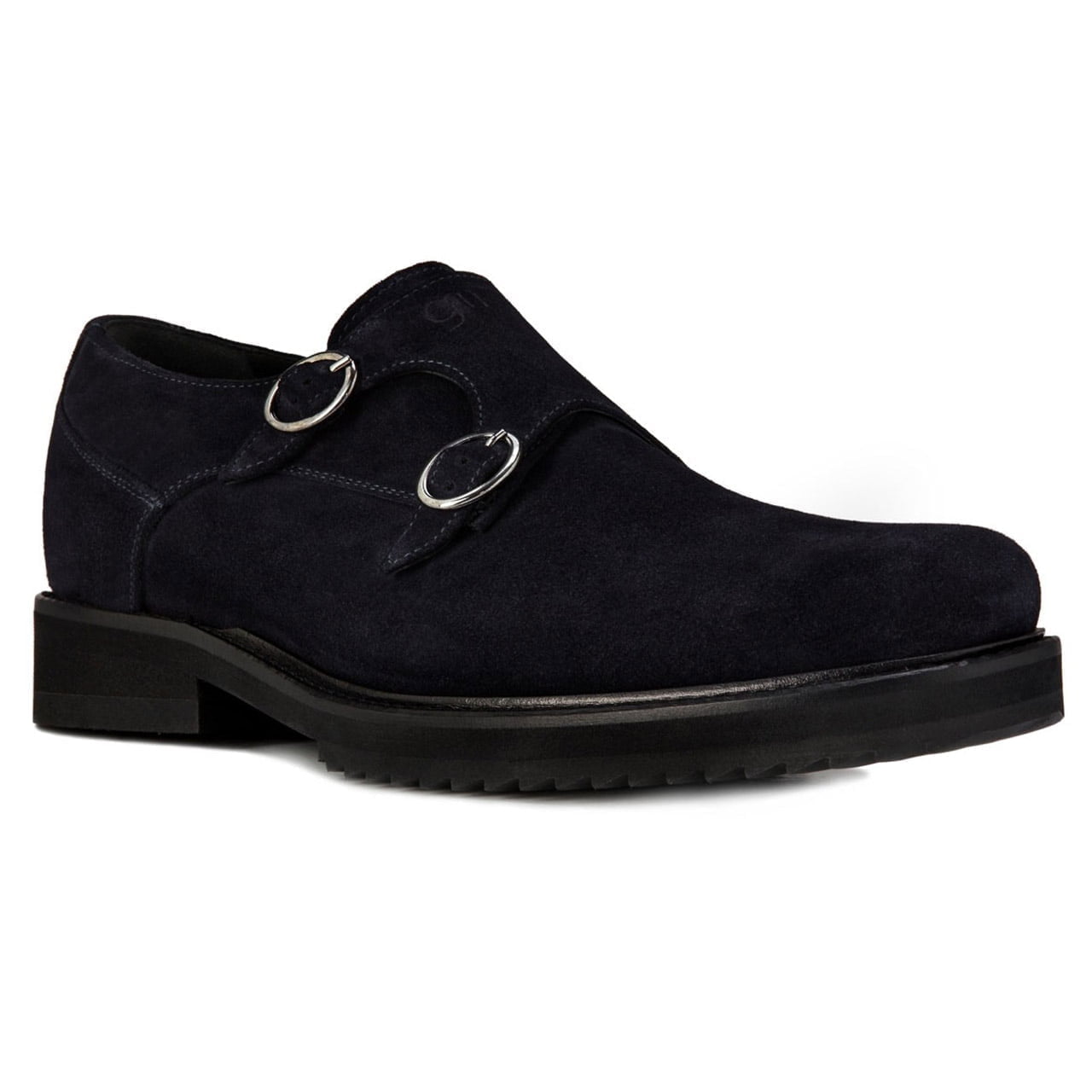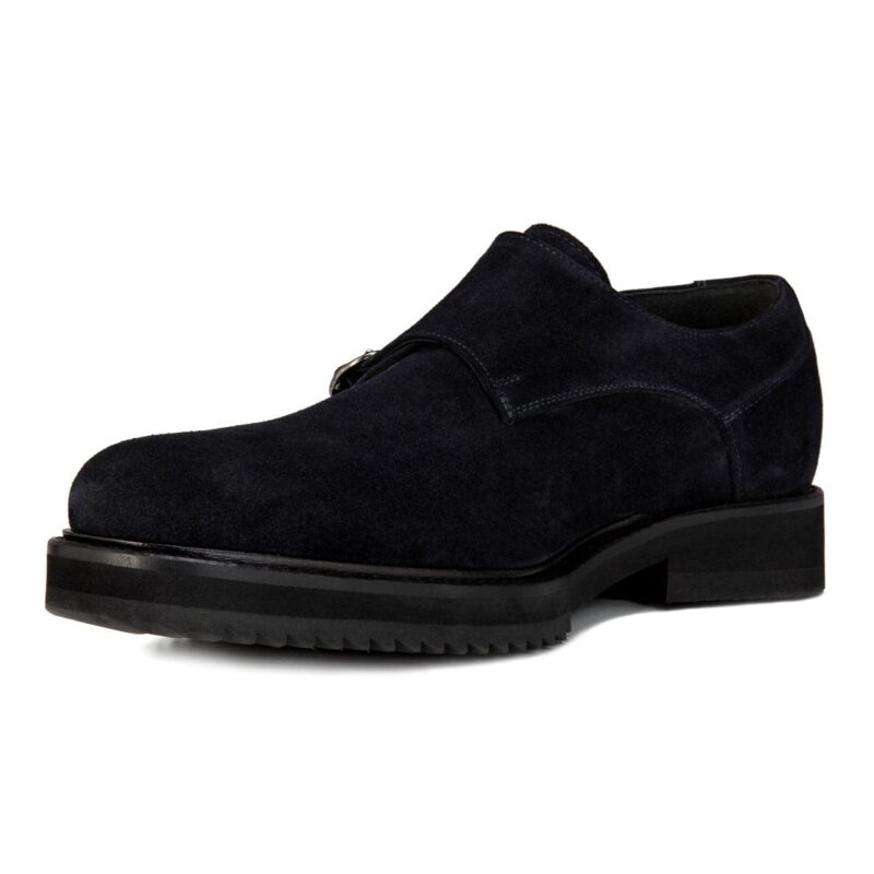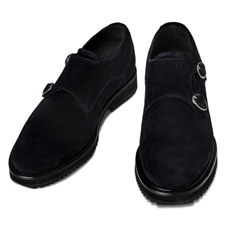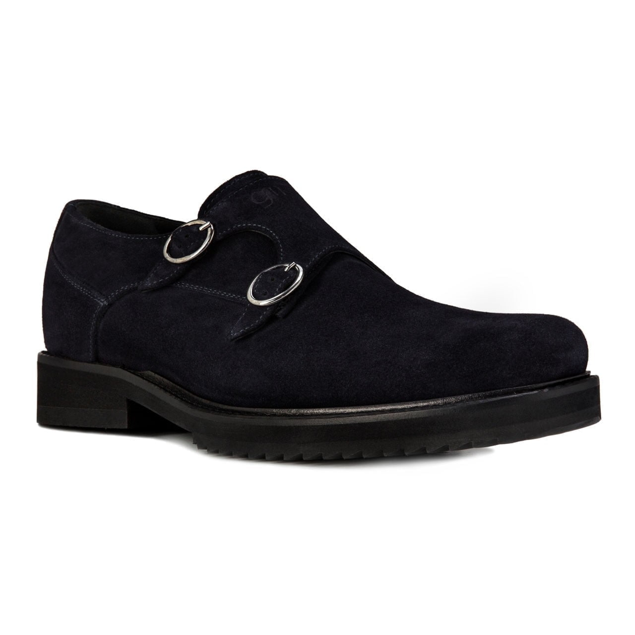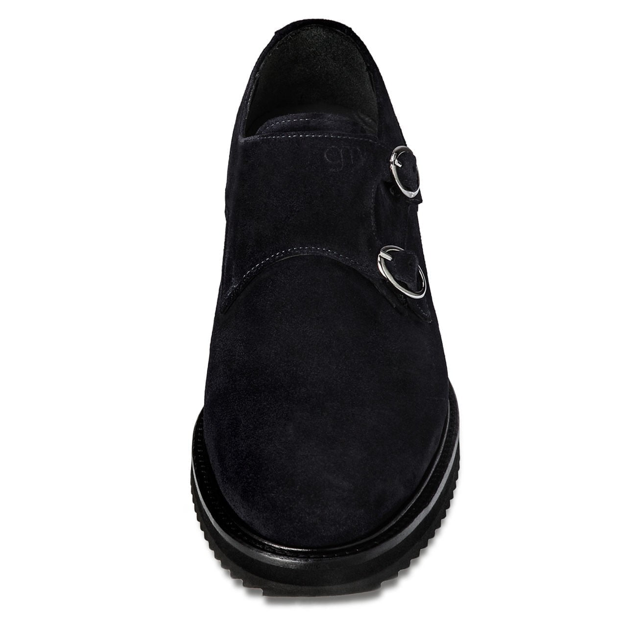 Elevator double buckle shoes featuring classic lines with upper made in black suede calf leather and outsole in super light tone-on-tone rubber.